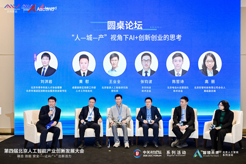 论坛汇聚专家学者、企业家、投资人、政府部门代表,通过案例分享、创新路演、圆桌对话等环节,共同探讨人工智能与创新创业的融合路径。智子引擎等企业代表分享了门头沟区“引育用留”人才服务体系、“京西智谷”产业生态,充分展现了雨林式创业生态对创新主体的强大吸附力。英诺天使从金融创投视角解读AI产业投融资逻辑与发展机遇。玛丽·居里学者华人学会、国研能汇、稳准智能等创新团队路演展示了智能制造、AIGC创作、通用大模型等前沿项目,覆盖人工智能、高端制造等多元场景。圆桌论坛环节围绕“人—城—产”与创新创业融合主题,深度探析“人才引领产业、产业支撑城市、城市留住人才”的协同发展路径。
